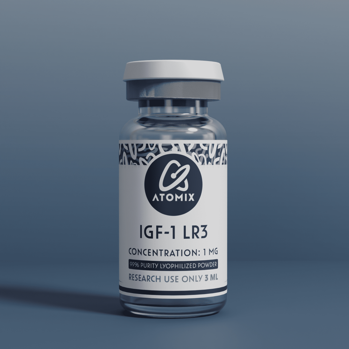 IGF-1 LR3 is a potent synthetic analog of insulin-like growth factor 1, featuring an arginine substitution at position three and an additional 13 amino acids at the N-terminus. These modifications make it significantly more potent and longer-lasting than native IGF-1, enhancing its effectiveness in stimulating cell growth, muscle repair, and metabolic activity. Researchers use IGF-1 LR3 in studies of tissue regeneration, lean mass development, fat metabolism, and endocrine signaling. Atomix Research supplies it in high purity, ensuring consistent and reliable performance in advanced laboratory settings.